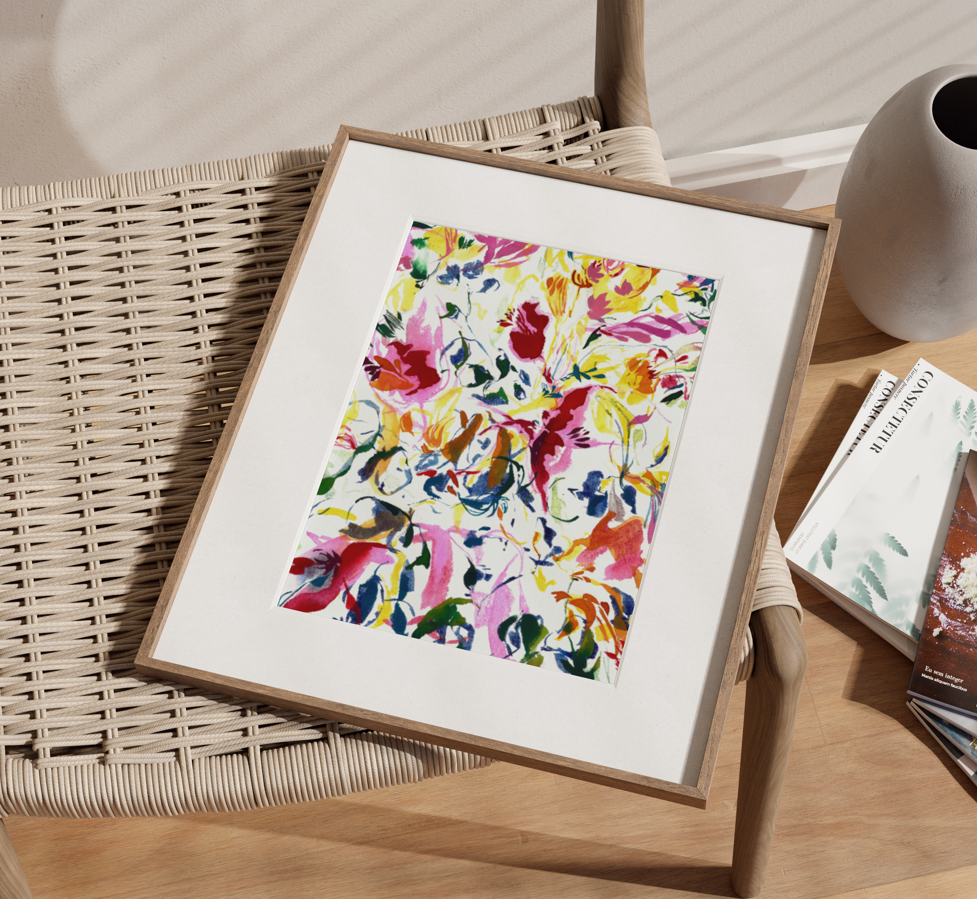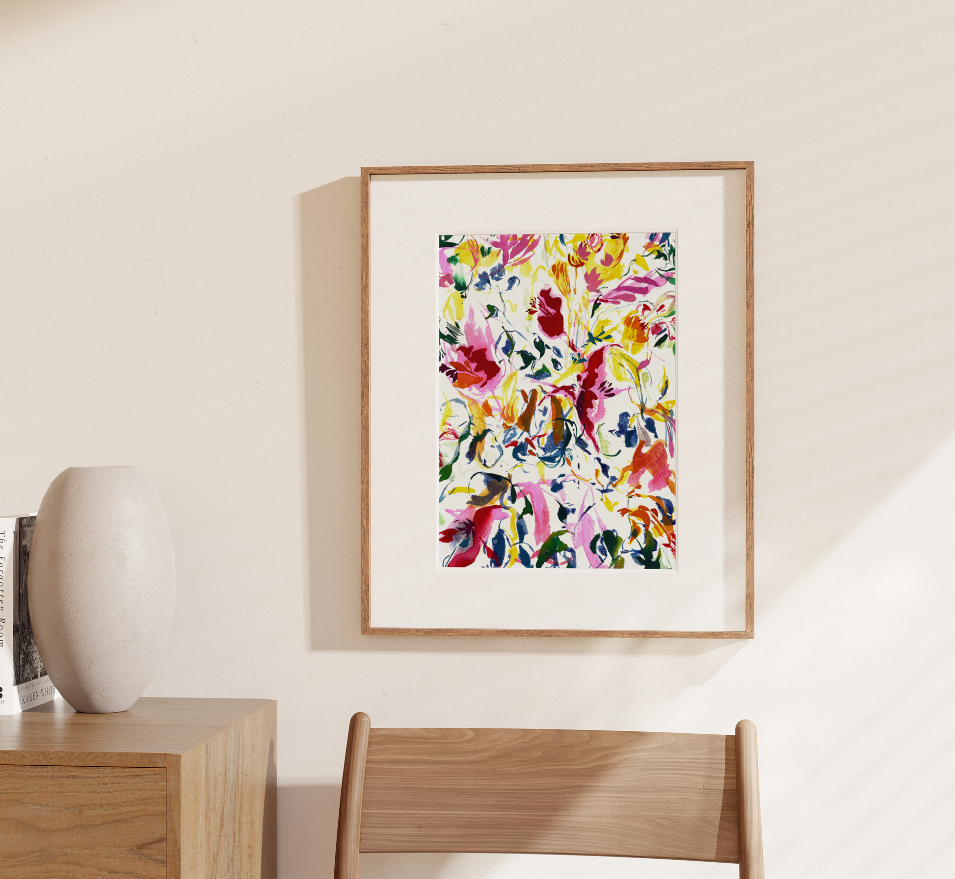 This piece isn't just a reproduction of a painting, but a step towards a colorful yet elegant living area that feels welcoming.